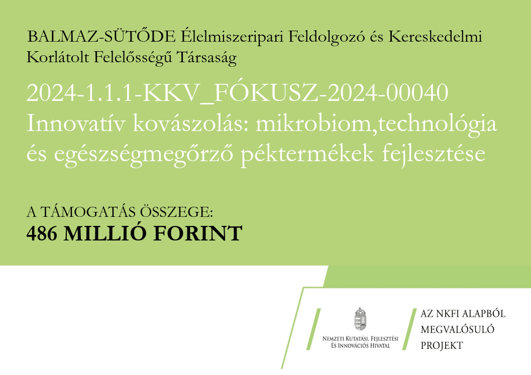 2024-1.1.1-KKV_FÓKUSZ-2024-00040 Innovatív kovászolás: mikrobiom,technológia és egészségmegőrző péktermékek fejlesztése
